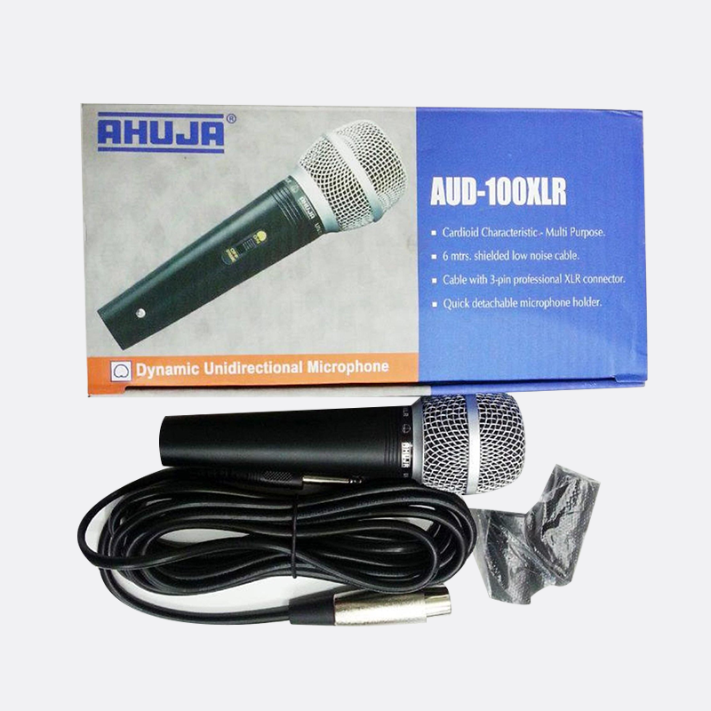 The Ahuja AUD-100XLR is a professional dynamic microphone manufactured by Ahuja, an Indian audio equipment company. This microphone is designed for various purposes such as live performances, public address systems, seminars, recording studios, and broadcasting.