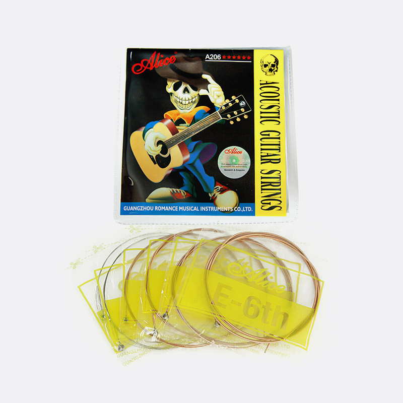 Phosphor bronze-colored copper alloy makes up the strings of the Alice A206 acoustic guitar. Anti-rust treatment extends the life of the strings considerably before oxidation occurs. These strings have an affordable price tag but offer a clean, long-lasting tone.